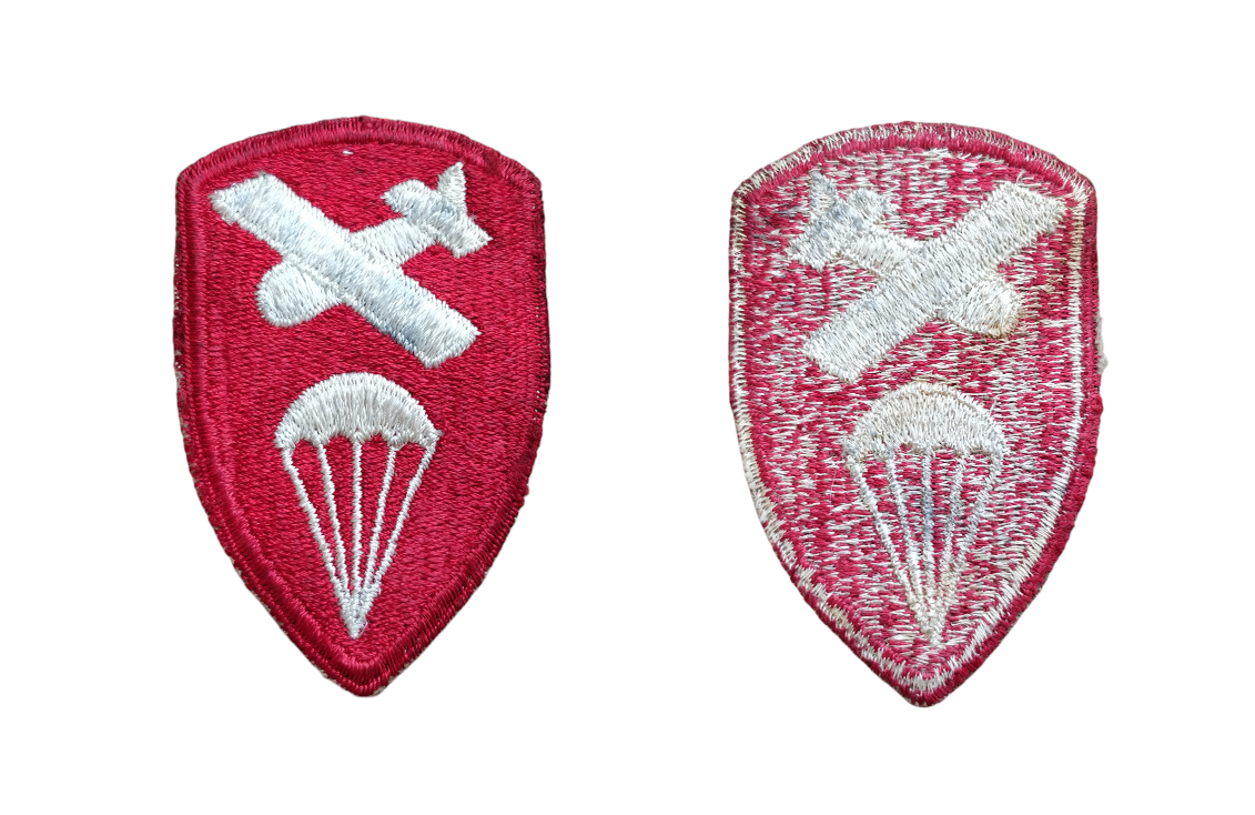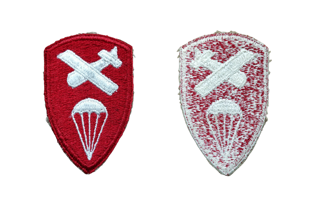 This insignia was worn from 1944 on and is the universal cap patch word by glider and airborne troops during World War Two. Patches for enlisted personnel were worn on the left side of the cap and officers wore the patch on the right side.