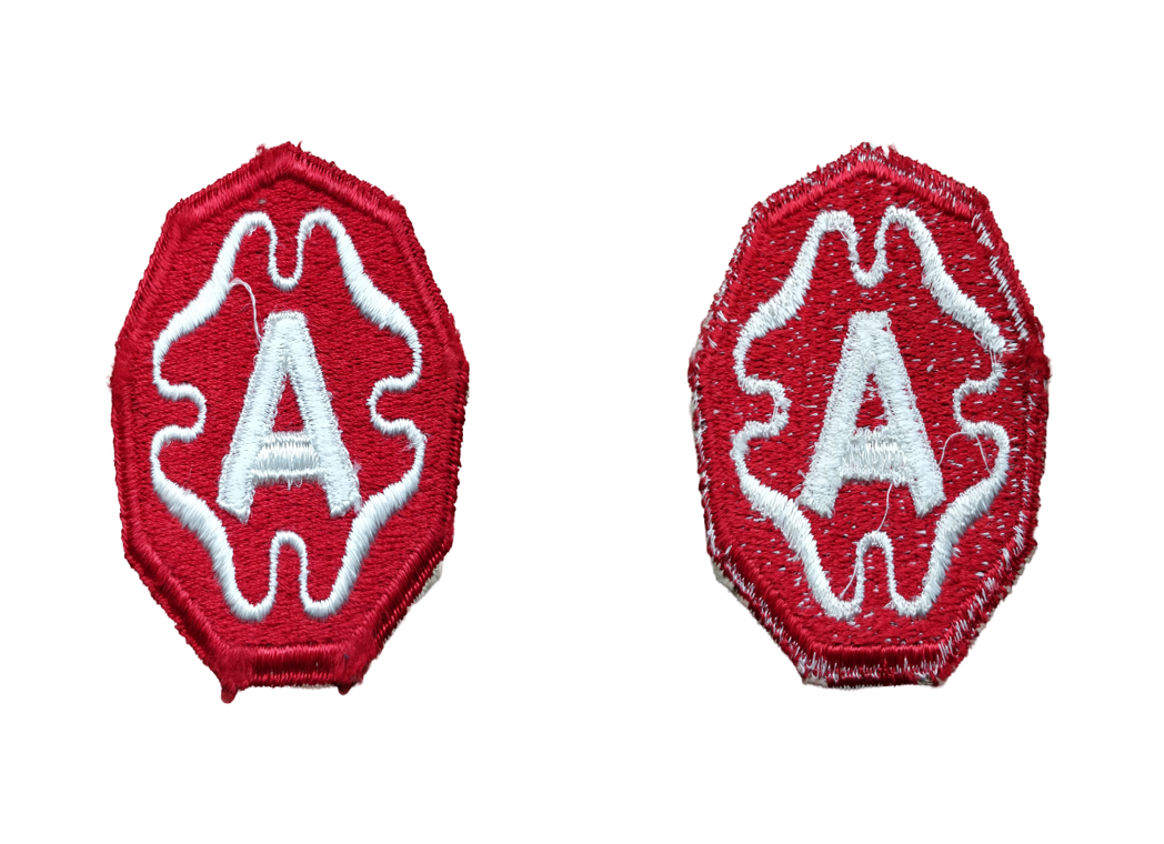 The Third Army patch is around insignia with a white A. Around the A is a red O with a blue background. The A-O stand for Army of Occupation.