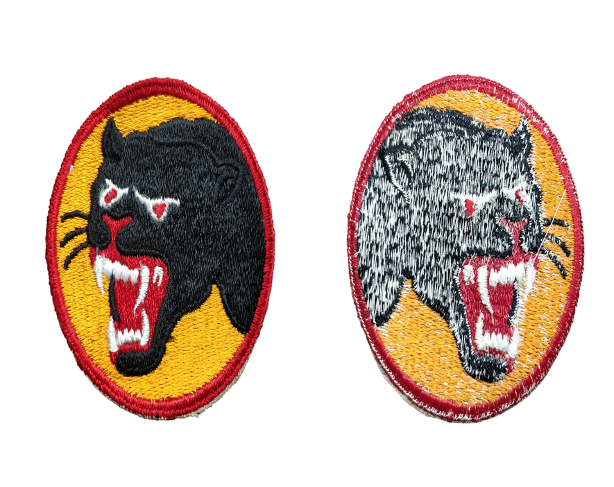 The insignia of the 92nd Infantry Division is a green round shape with in the middle a black buffalo.