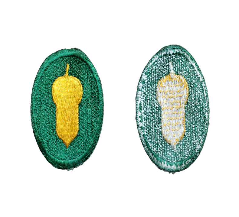 The insignia of the 91st Infantry Division is a green pine tree shape.
