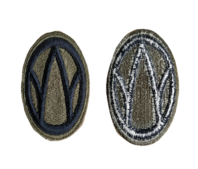 The insignia of the 89th Infantry Division is a green circle shape with a black border and a black W.