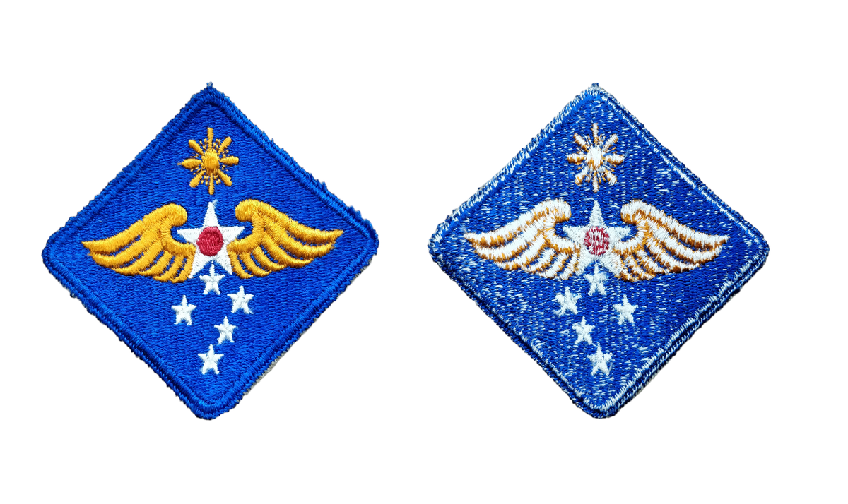 The commands insignia is a blue shield shape with the USAAF white star with a single yellow wing. Under the wing are 7 smaller yellow stars.