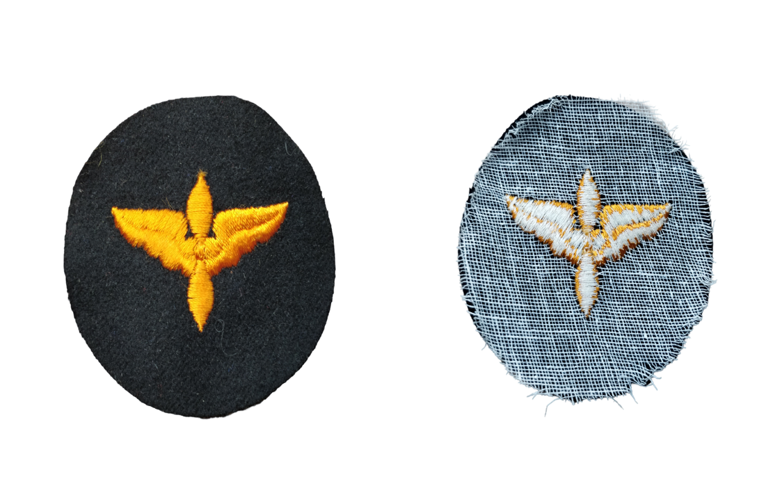 The insignia is a black or blue background with a winged propeller in the middle.