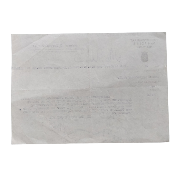 Het document is nog in nette staat en bevat informatie over het inleveren van de radio in Helmond. Een interessant regionaal item voor je collectie!