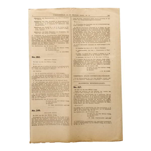 Hierin staan nieuwe verordeningen beschreven die werden ingevoerd door het Militair gezag.