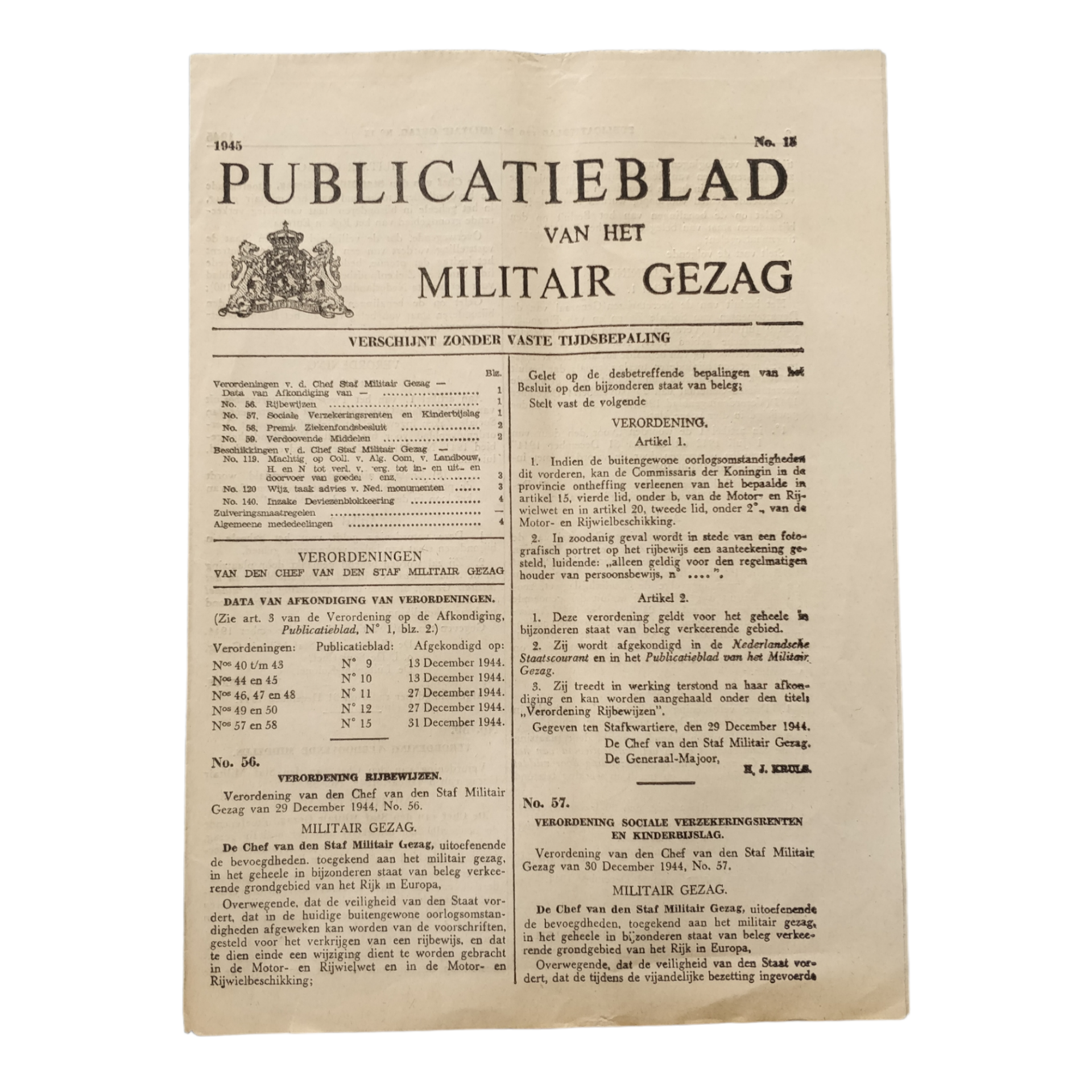 Hierin staan nieuwe verordeningen beschreven die werden ingevoerd door het Militair gezag.