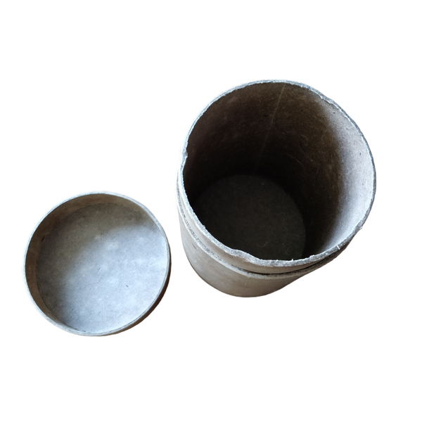 De container is nog in nette staat. Gemaakt van dik karton en op de onderkant nog netjes gemarkeerd. De container werd gebruikt voor lading van het LFH 18 geschut.