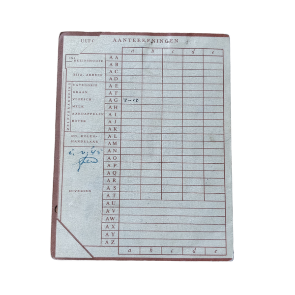 De stamkaart is nog in nette staat, deze kaarten werden gebruikt voor het verkrijgen van distributiebonnen tijdens de Tweede Wereldoorlog. Een leuk regionaal item!