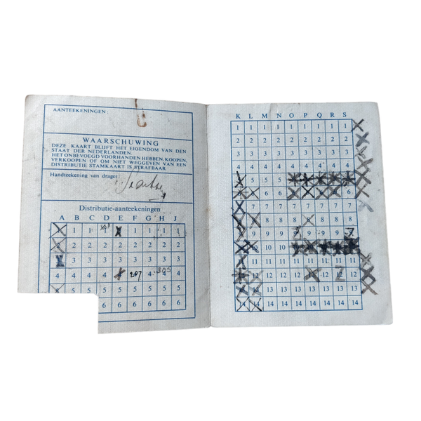 The cards are still in good condition, these cards were used to obtain distribution coupons during the Second World War. A nice regional item!