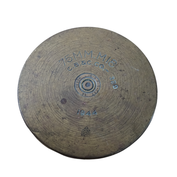 De huls is in nette staat, deze werden onder andere gebruikt voor de Amerikaanse Sherman tank. De huls is gevonden op een rommelmarkt in de Ardennen. De huls is opgepoetst en goed leesbaar.