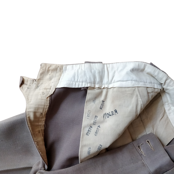 De broek heeft wat gebruikssporen zoals een vlekje op kniehoogte, een scheurtje in een van de zakken en wat plekjes bij de kontzak. Aan de binnenkant is nog duidelijk een naam en meerder nummers te lezen. Een mooie toevoeging voor de mannequin!