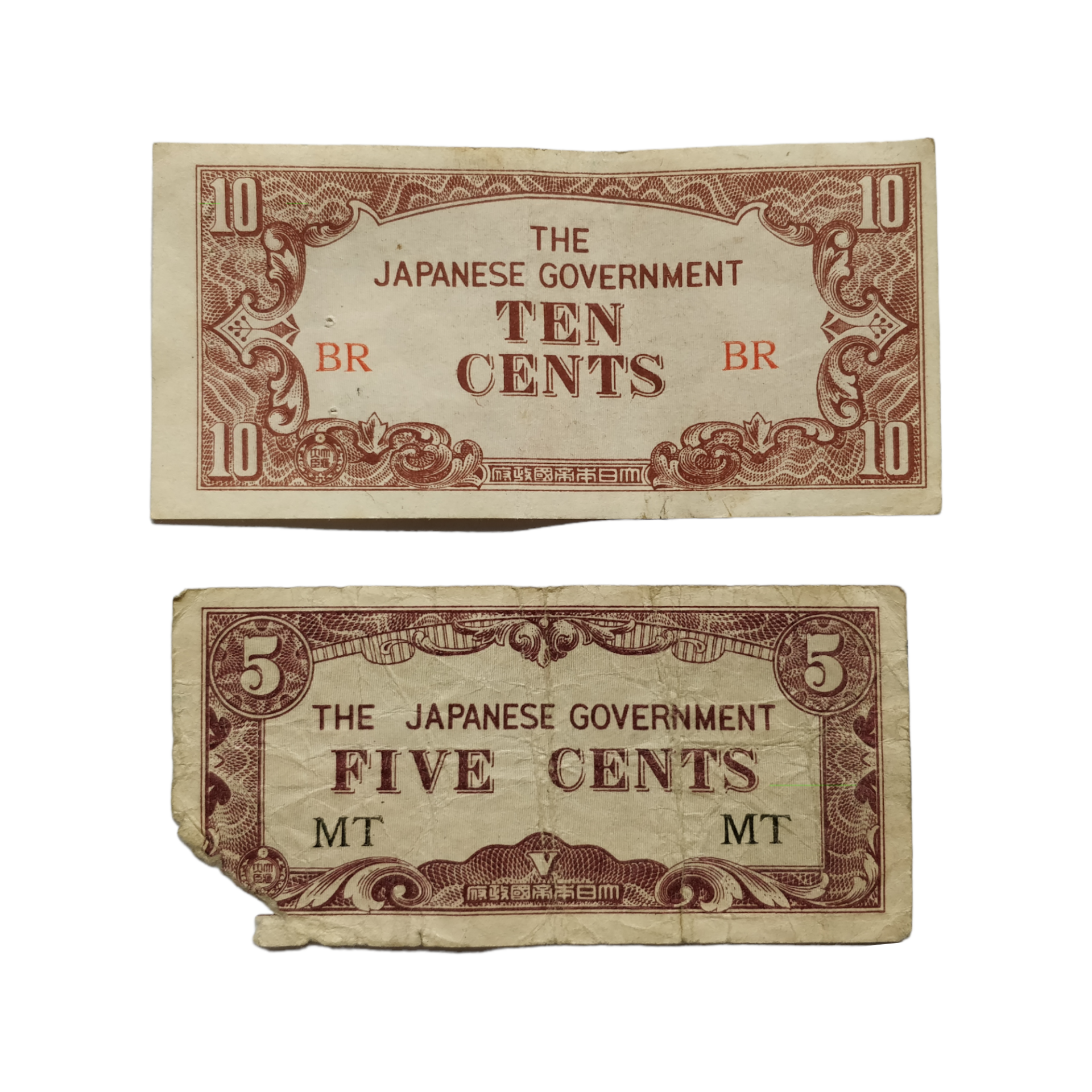 Een bankbiljet zoals gebruikt als bezettingsgeld in Azie ten tijde van de Tweede Wereldoorlog. Het betreft hier 9 stuks!