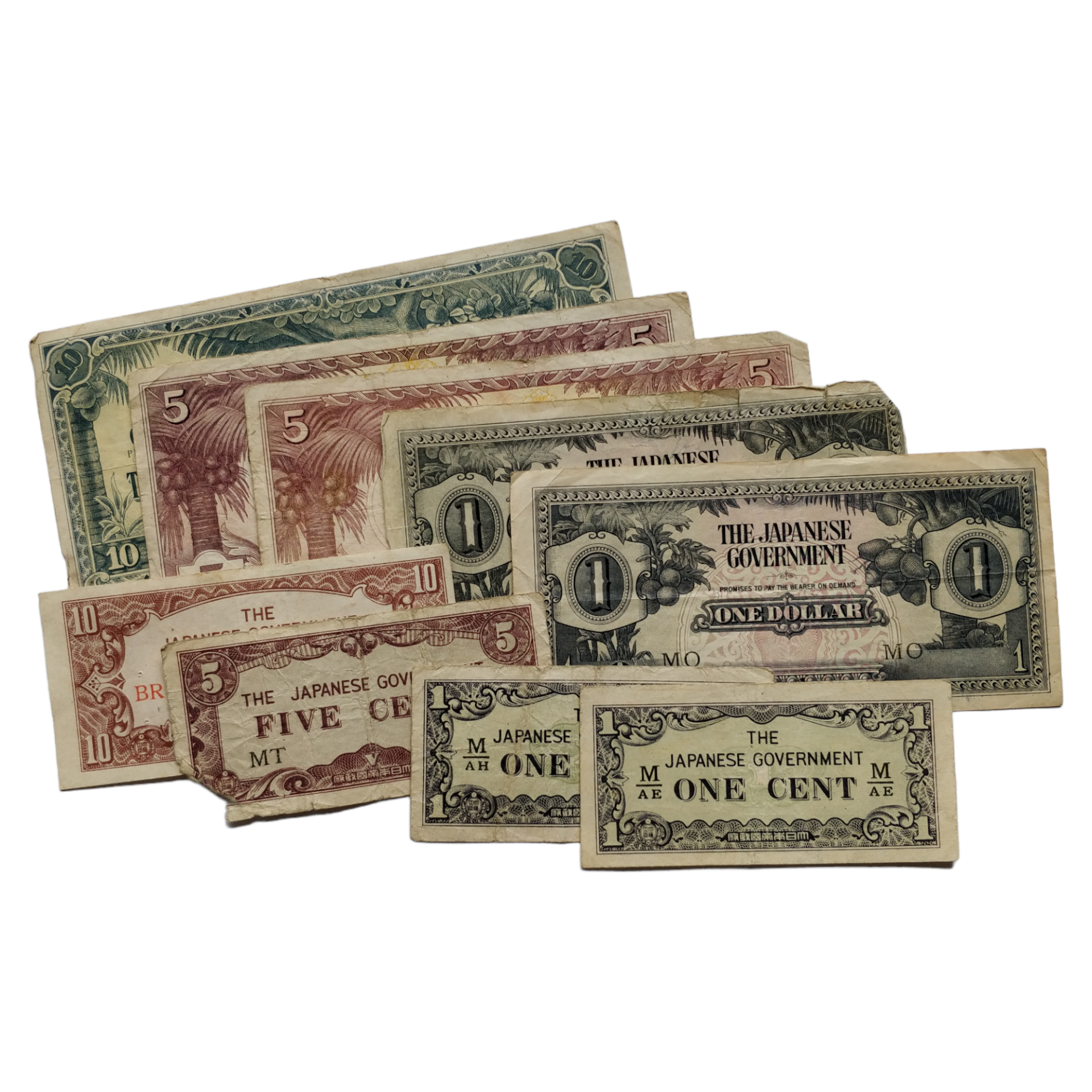 A bancnote wich was used in Asia during World War two. This set contains 9 pieces!