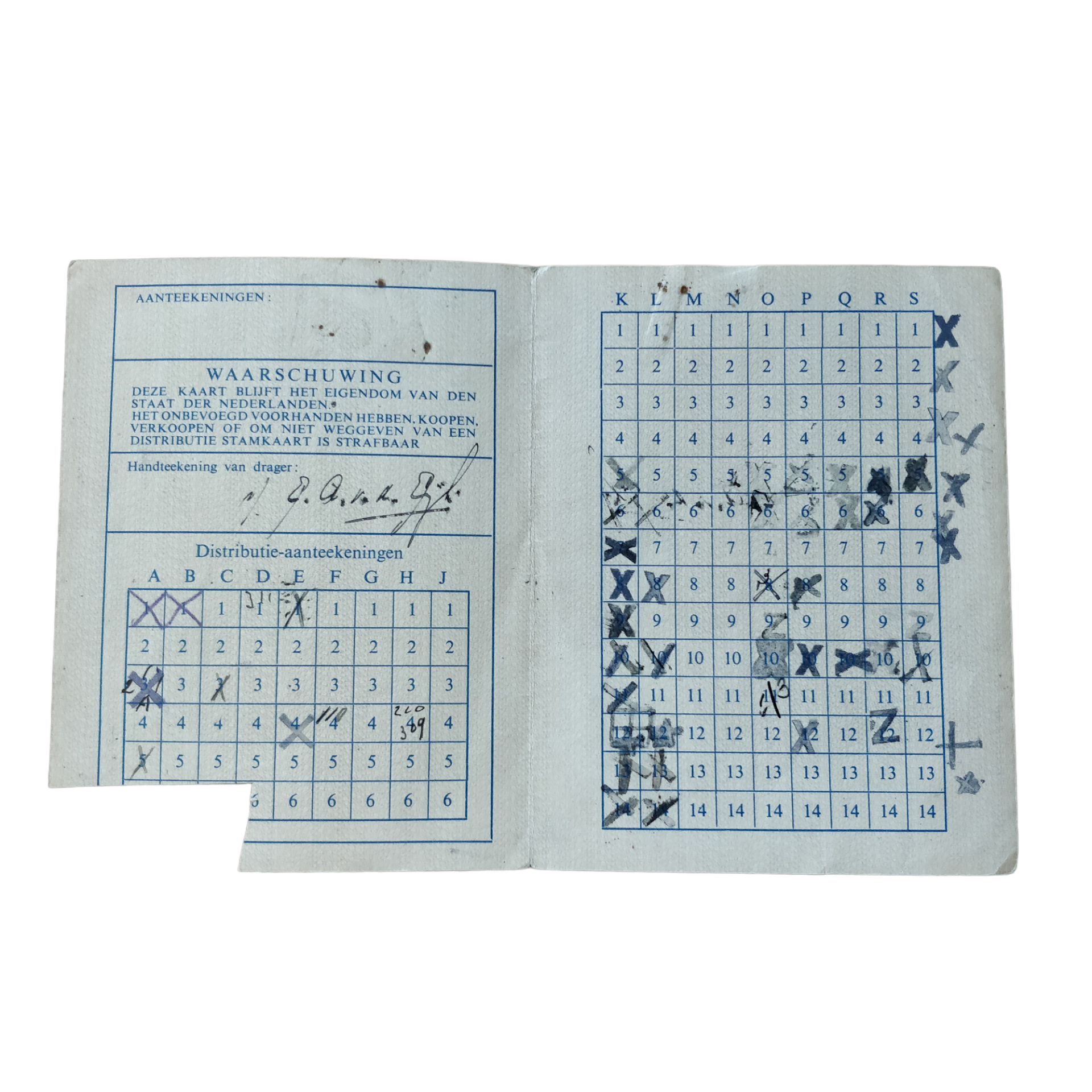 De stamkaart is nog in nette staat, deze kaarten werden gebruikt voor het verkrijgen van distributiebonnen tijdens de Tweede Wereldoorlog. Een leuk regionaal item!