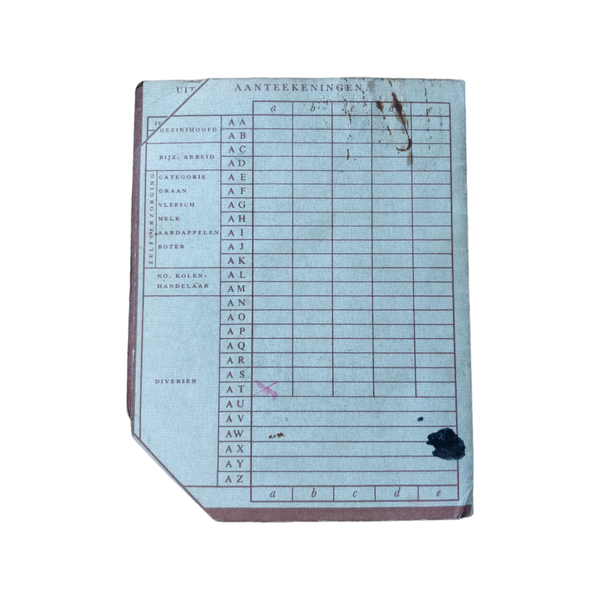 The cards are still in good condition, these cards were used to obtain distribution coupons during the Second World War. A nice regional item!