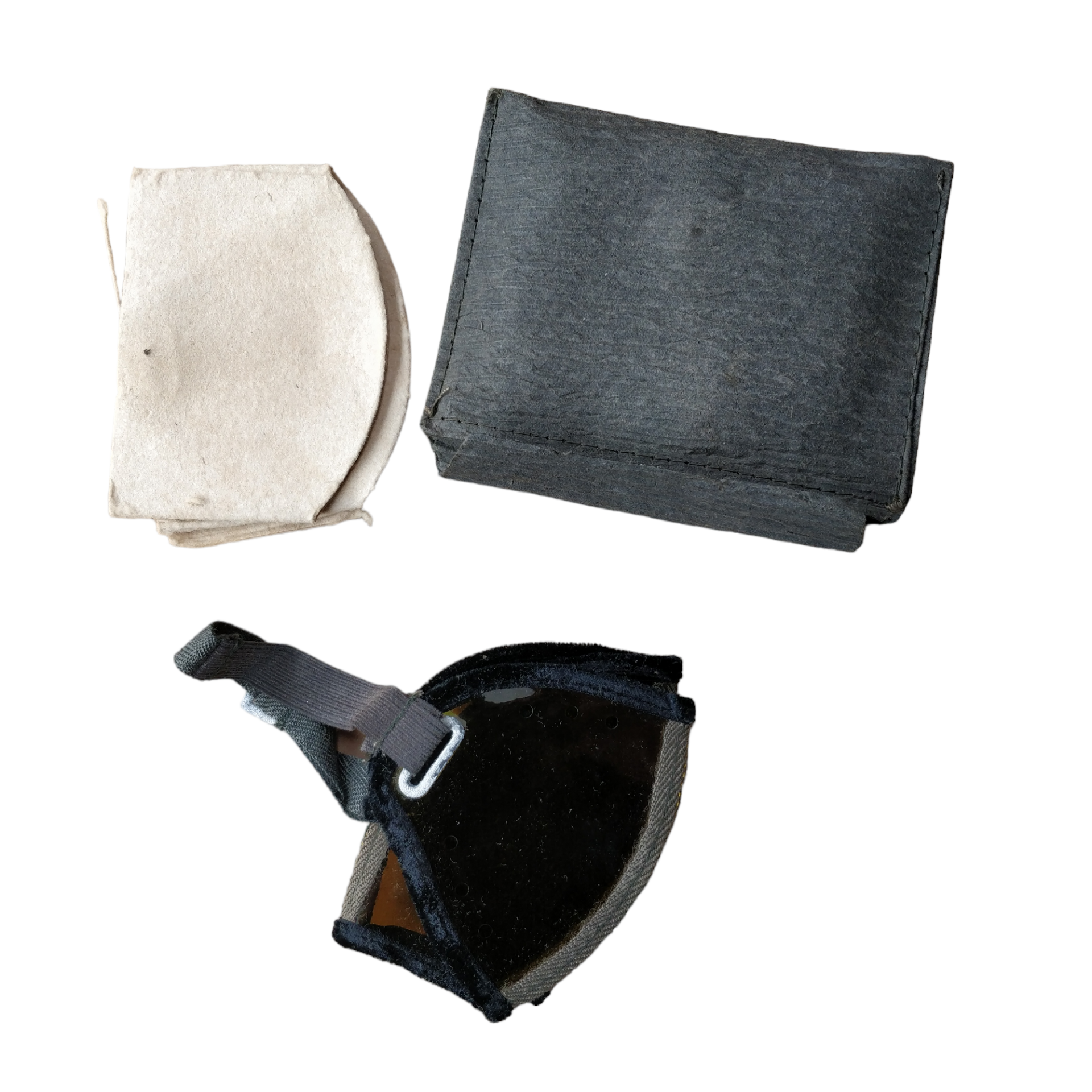 The glasses are still in neat condition. Of course there is some damage on the paper casing and the glasses have some oxidation spots on the buckles. For example, these glasses were worn on the eastern front against dust in the eyes! A nice addition for the collector!