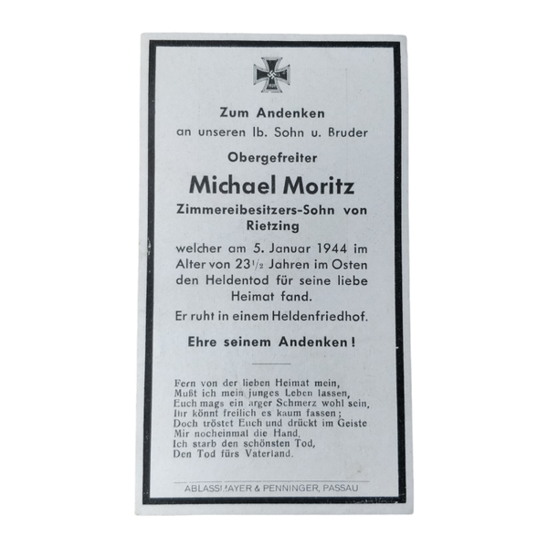 WWII German Death card