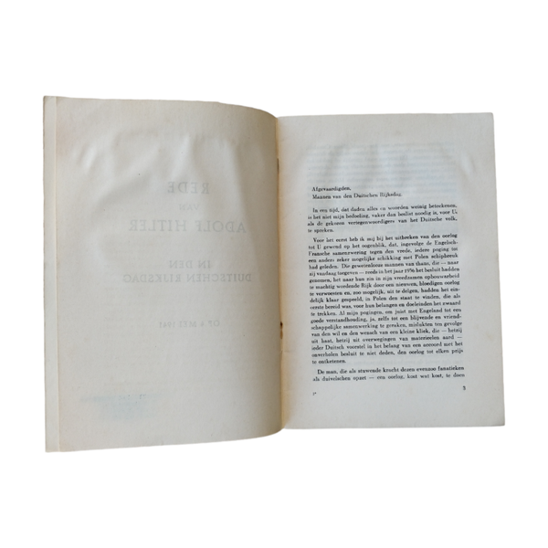 The brochure has signs of use. An interesting piece for the Dutch collector! The brochure contains the speech Adolf Hitler has given.