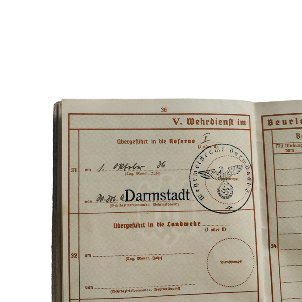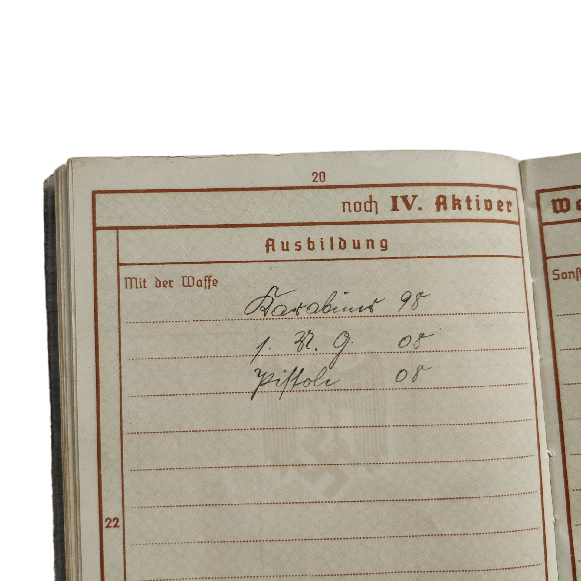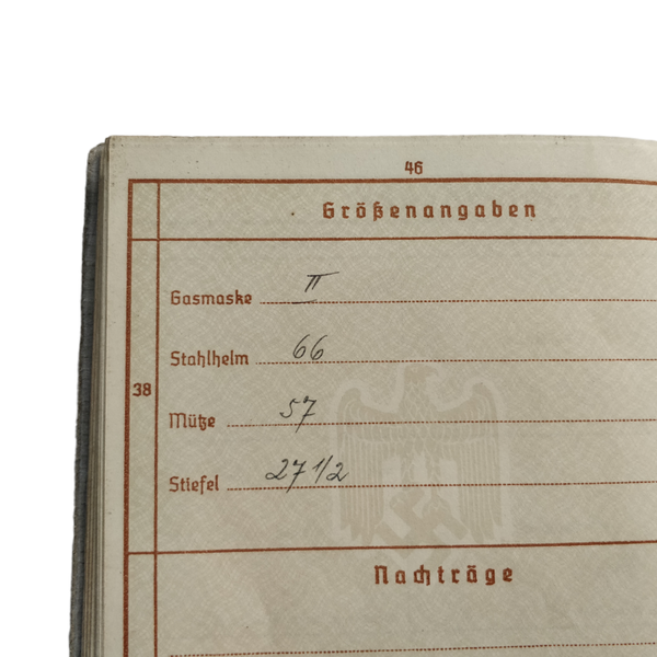 De Wehrpass is nog in redelijke conditie en heeft een aantal leuke toevoegingen aan informatie. Voor de oorlog als vrijwilliger aangemeld bij het leger en onderdeel geweest van het 4e mg kompanie. 57e infanterie regiment. In 1938 reserve geworden. Een leuk stuk om verder uit te zoeken en toe te voegen aan je verzameling!
