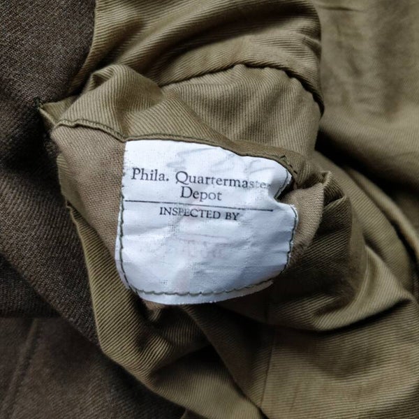De ike jacket heeft zo zijn gebruikssporen. Hier en daar zitten wat plekjes. Ook het label is nog redelijk leesbaar. De jas heeft een ruptured duck patch voor eervol ontslag, 4 overseas bars en patches van de 2st Army en de 3rd Army. Een mooie jas voor de Amerikaanse verzamelaar!