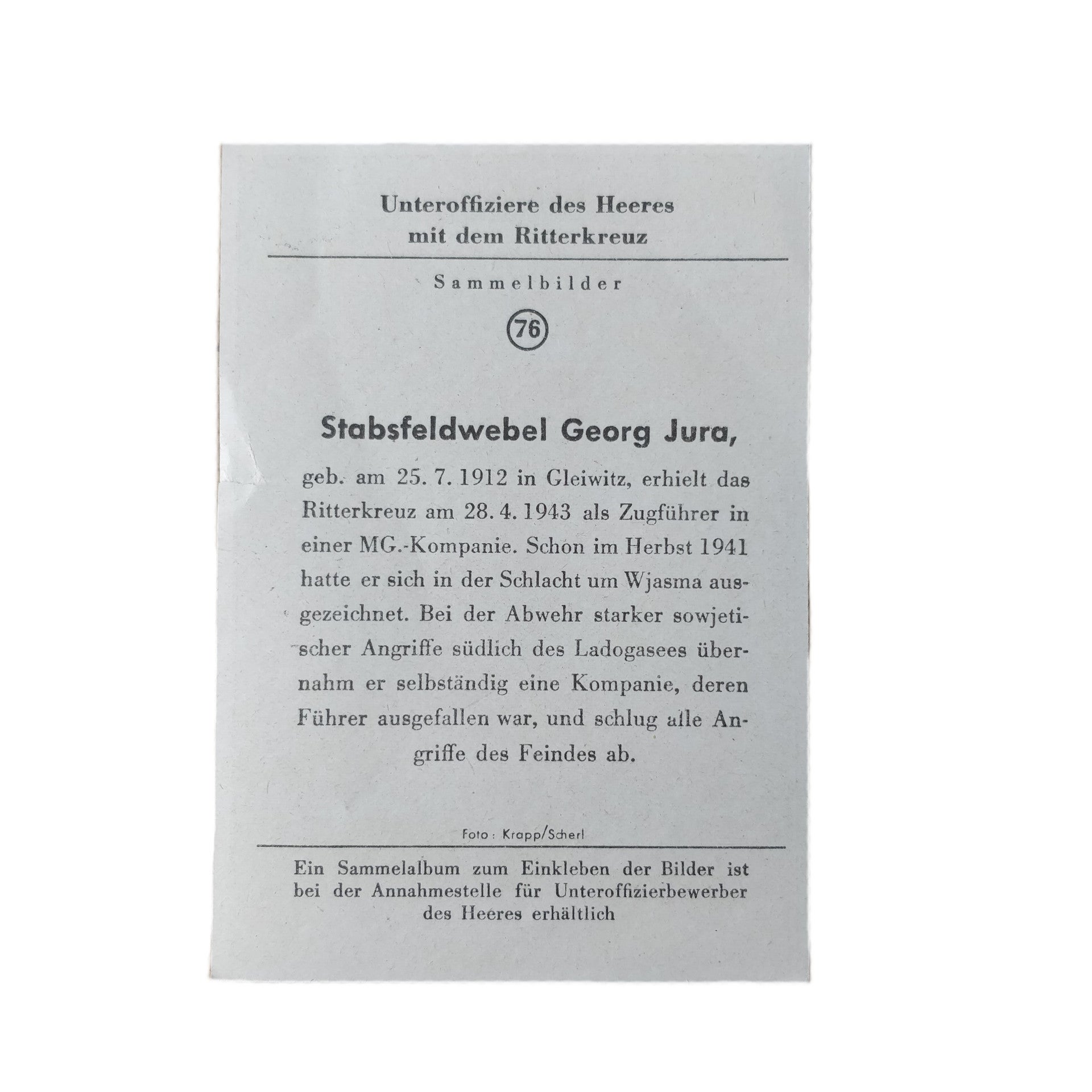 Deze foto's kon men verzamelen, hierop stonden soldaten die het Ridderkruis hadden verdiend. Dit diende als een propaganda middel.