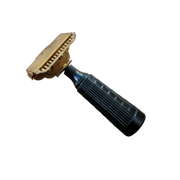 De verpakking is nog in nette staat en de tekst is goed leesbaar. De scheerkrabber zelf is ook netjes leesbaar met merk GEM. Een leuke set voor bij de persoonlijke spullen van de Amerikaanse soldaat!