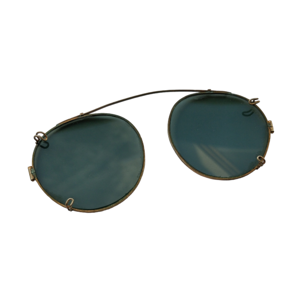 The sunglasses are still in good condition, the lenses are still intact and there are only minor signs of wear on the frame. These clip ons could be placed on other glasses to be used as sunglasses. These sunglasses were often made by Ray-Ban, unfortunately no maker can be found for these sunglasses.
