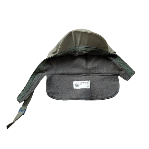 Deze muts werd gedragen bij koud weer. De muts heeft uiteraard wat gebruikssporen en is helaas beschadigd bij het gespje. Een leuk stuk voor de beginnende Amerikaanse verzamelaar!