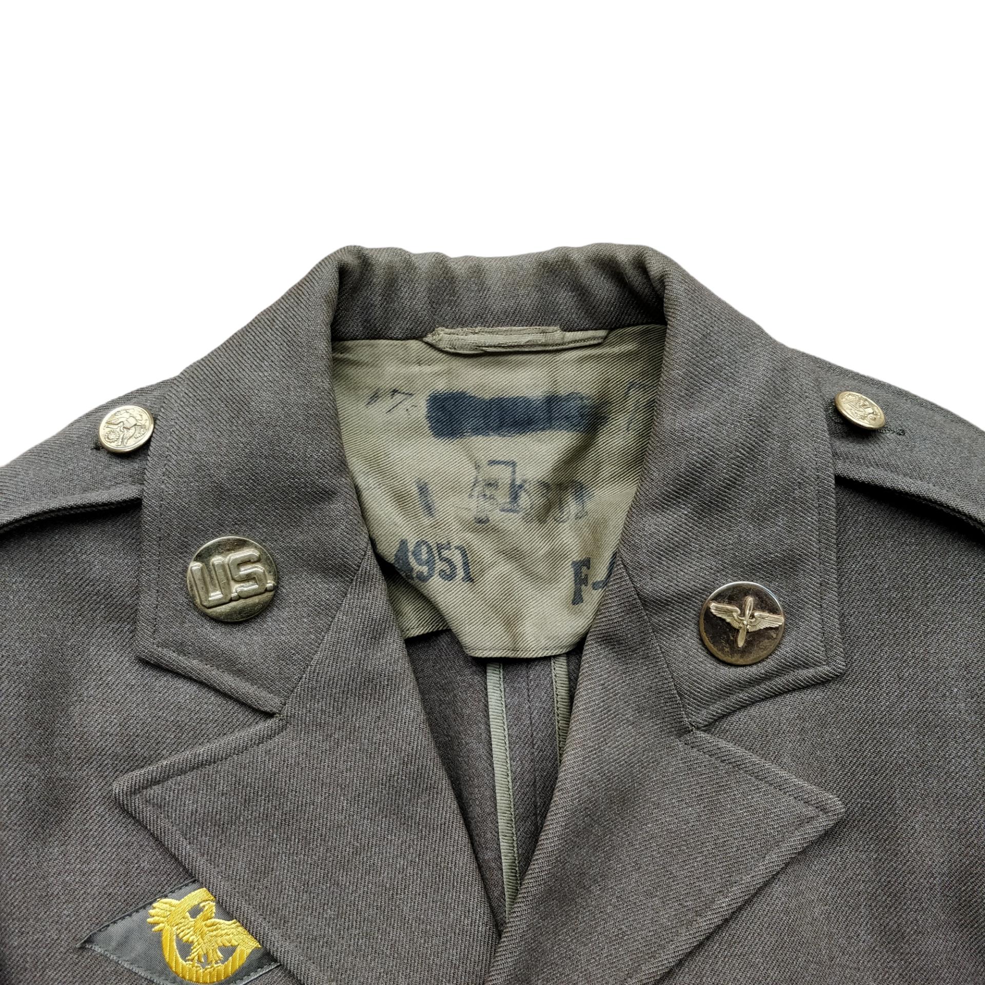 The jacket belonged to a soldier who was part of the American Air Force. The soldier's rank was Sergeant. The jacket appears to be Reissued because there is still a name under the laundry code, which is a bit difficult to read.