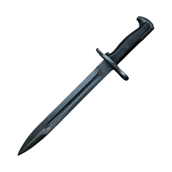 The bayonet is still in very neat condition. The scabbard has been painted over. These bayonets were carried by American soldiers during World War II. This piece is neatly dated. A beautiful piece for the US collector!