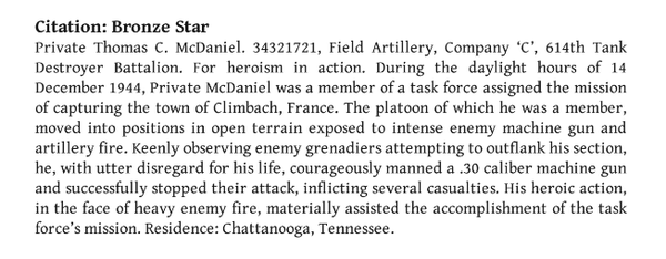 Het shirt is in nette conditie, helaas zijn het label en de insignes niet meer aanwezig. Op het shirt is duidelijk te zien dat hier ooit sergeant stripes en een ronde patch hebben gezeten. In de kraag zijn de initialen TCM en Laundry code M-1721 te zien. De enige match die ik heb gevonden met deze initialen en laundry code is Thomas C McDaniel, welke onderdeel was van het 614e Tank Destroyer Battalion. Een mooi shirt voor restauratie of om verder onderzoek naar te doen!