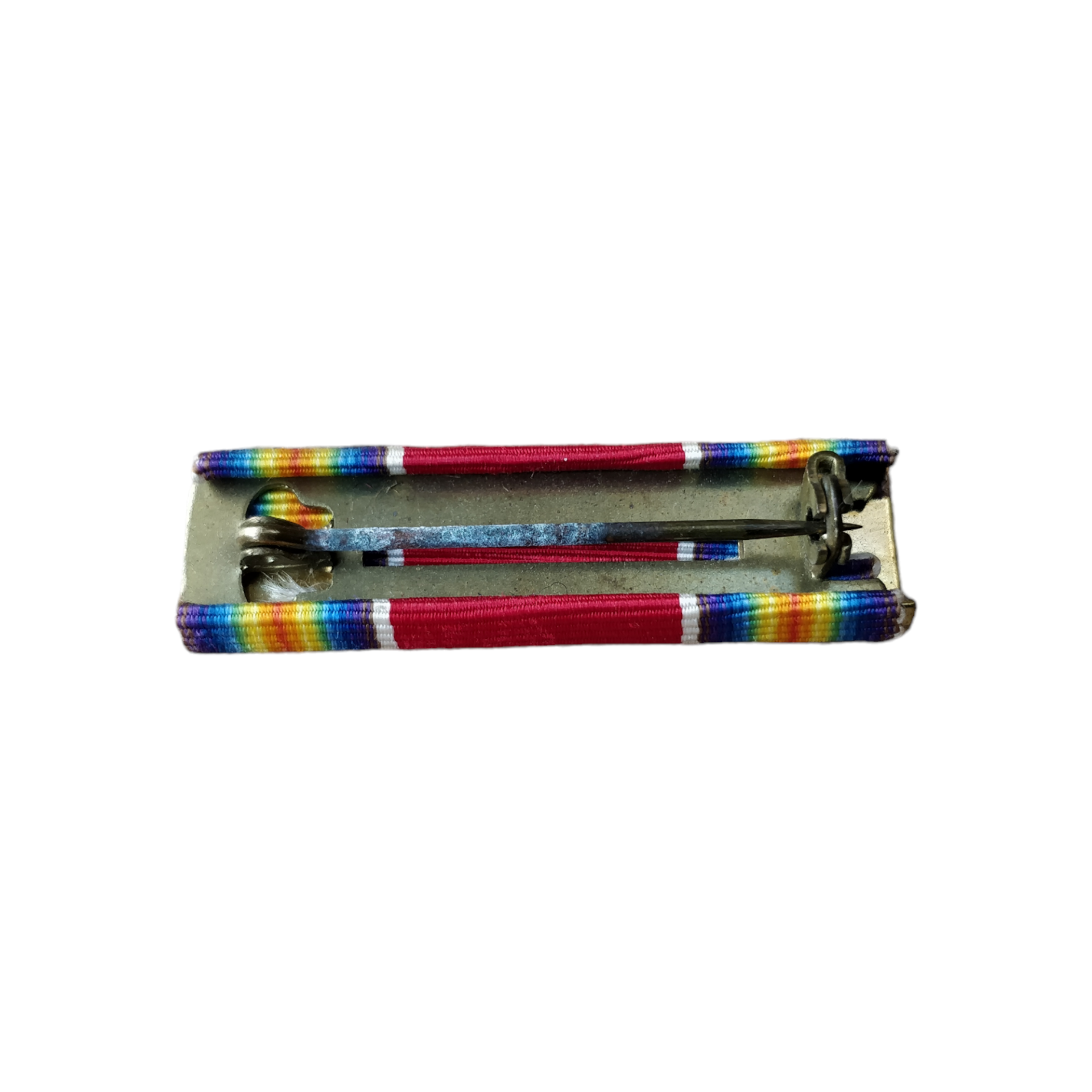 The ribbon bar is in neat condition and fits nicely on an American uniform. This one is for the victory medal.