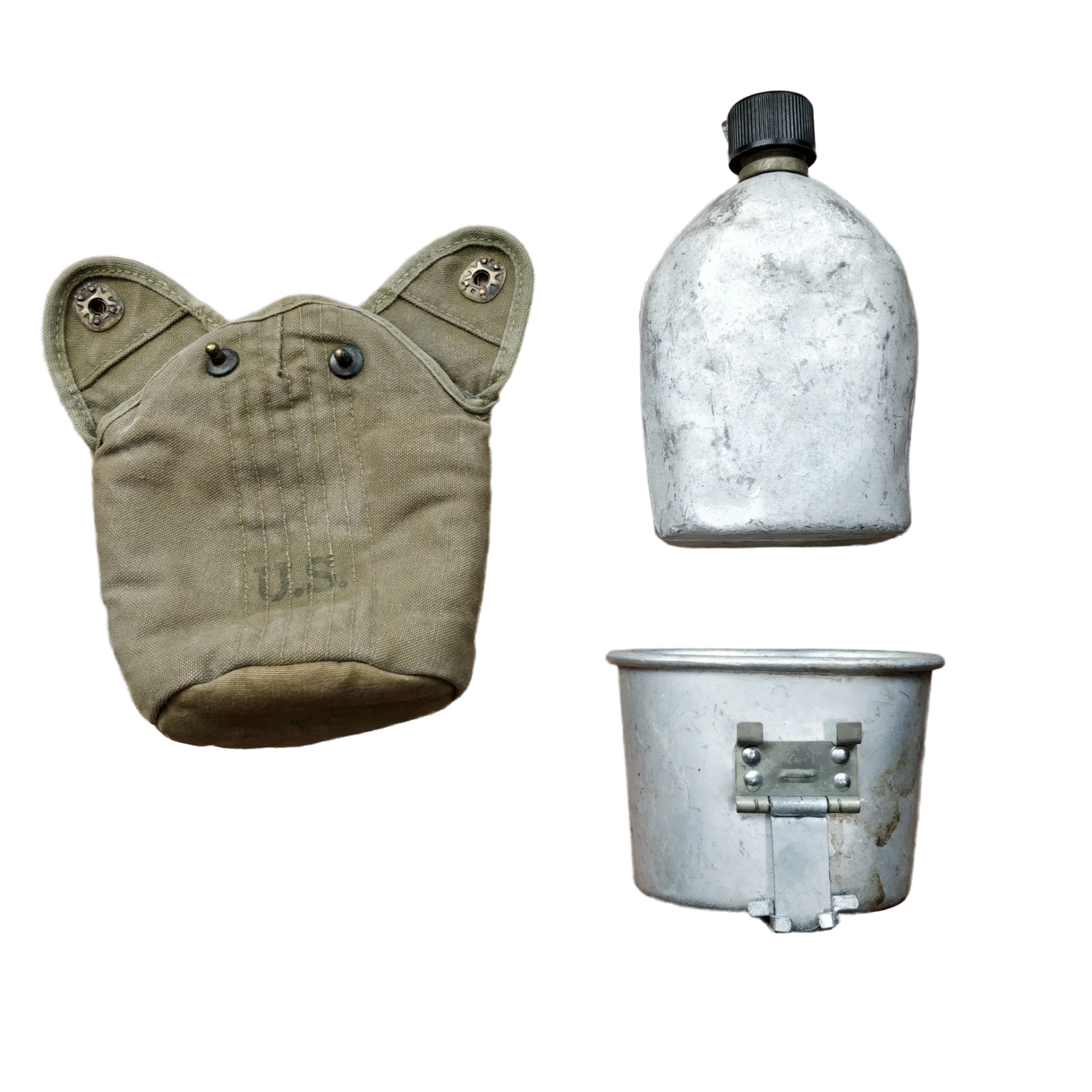 The bottle is a WW1 used one from 1918 and the cup is dated 1943. A nice item to complete your mannequin/equipment set!