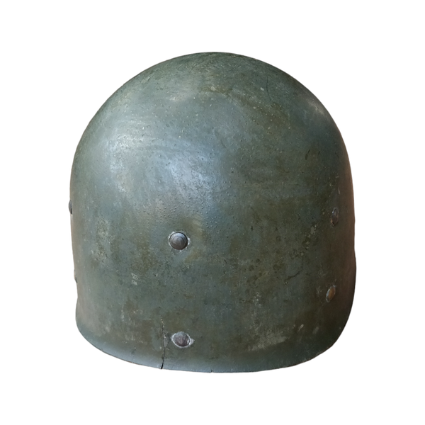 The helmet is still in reasonably good condition, the helmet has fixed bales. The helmet appears to have been repainted at some point, probably late in the war. The Heatstamp is still clearly visible on the inside of the helmet, 94A, which indicates a production between late 1941 and early 1942.