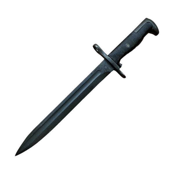 The bayonet is still in very neat condition. The scabbard has been painted over. These bayonets were carried by American soldiers during World War II. This piece is neatly dated and is a shortened model. A beautiful piece for the US collector!