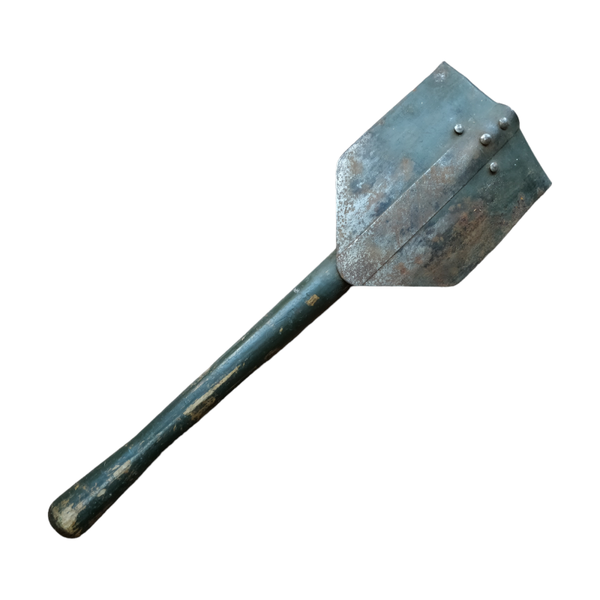 Leuke Amerikaanse schep voor de verzamelaar. De schep is nog met hoes. Lastig te vinden 1943 gedateerd exemplaar! In gebruikte conditie maar zeker niet misstaand op een mannequin. Een leuke toevoeging aan de collectie van een US verzamelaar!