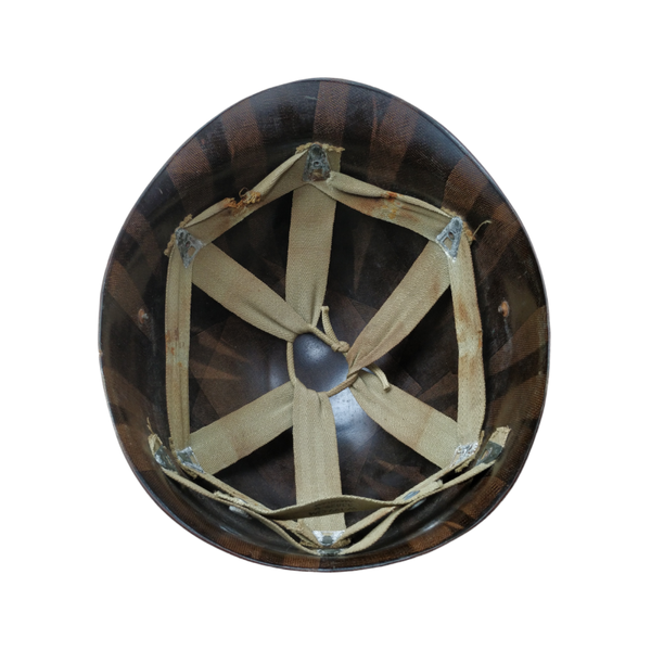 The liner is still in good condition, but it is missing the leather sweatband. This is a Westinghouse liner. The number on the side is unknown to me. A nice late helmet for the American militaria collector!