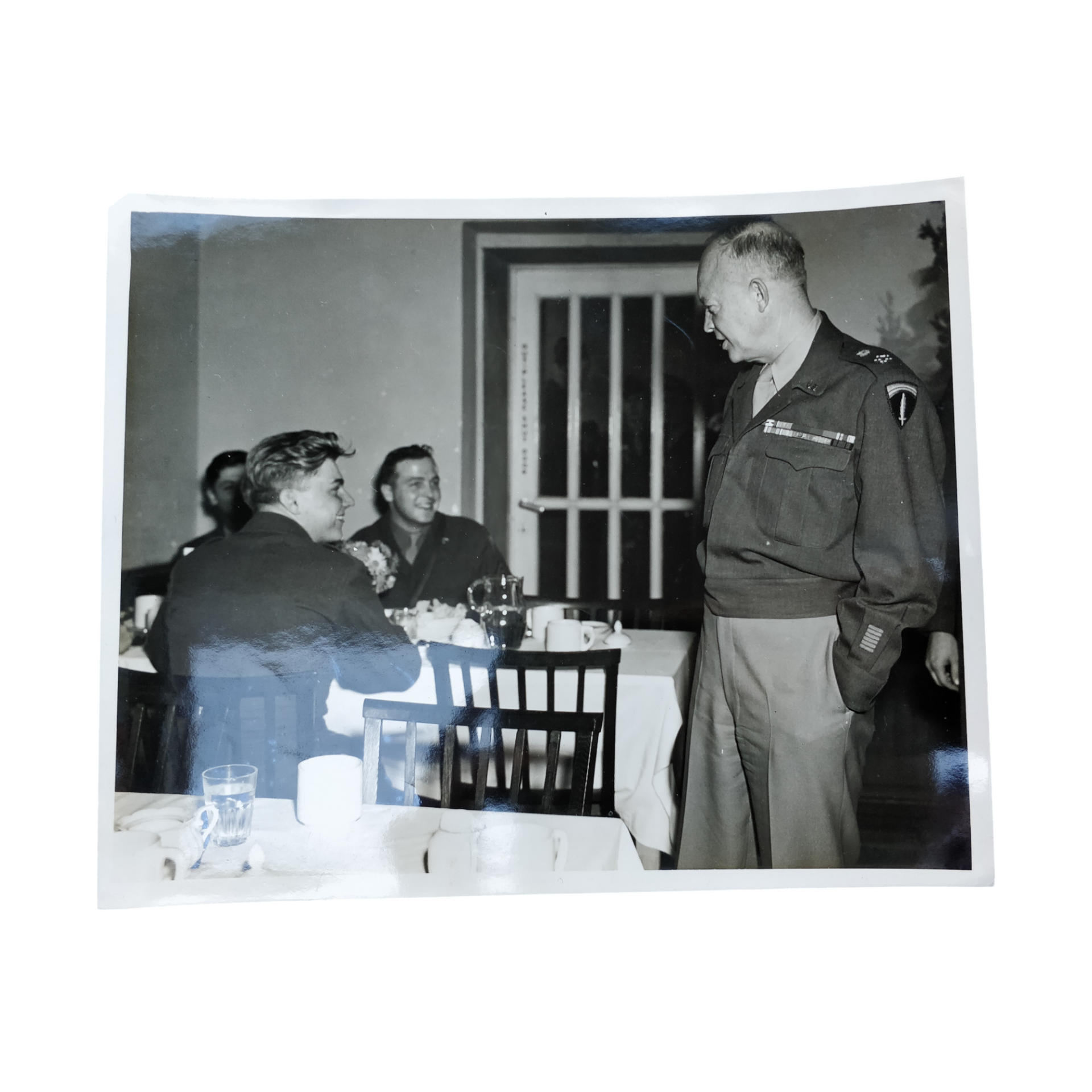 De persfoto is nog in nette staat. Het formaat is iets kleiner dan A4. Op de achterzijde is nog meer informatie leesbaar over wat er zich afspeelt op de foto. Een interessant stuk voor de US verzamelaar en mooi om in te lijsten!