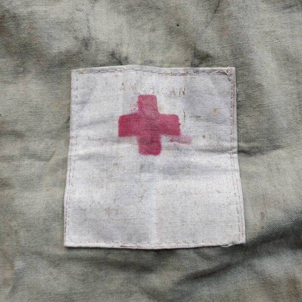 The bag is still in good condition and a little Red Cross is still visible on the label. These bags were used for the personal belongings of soldiers who were taken in or killed.