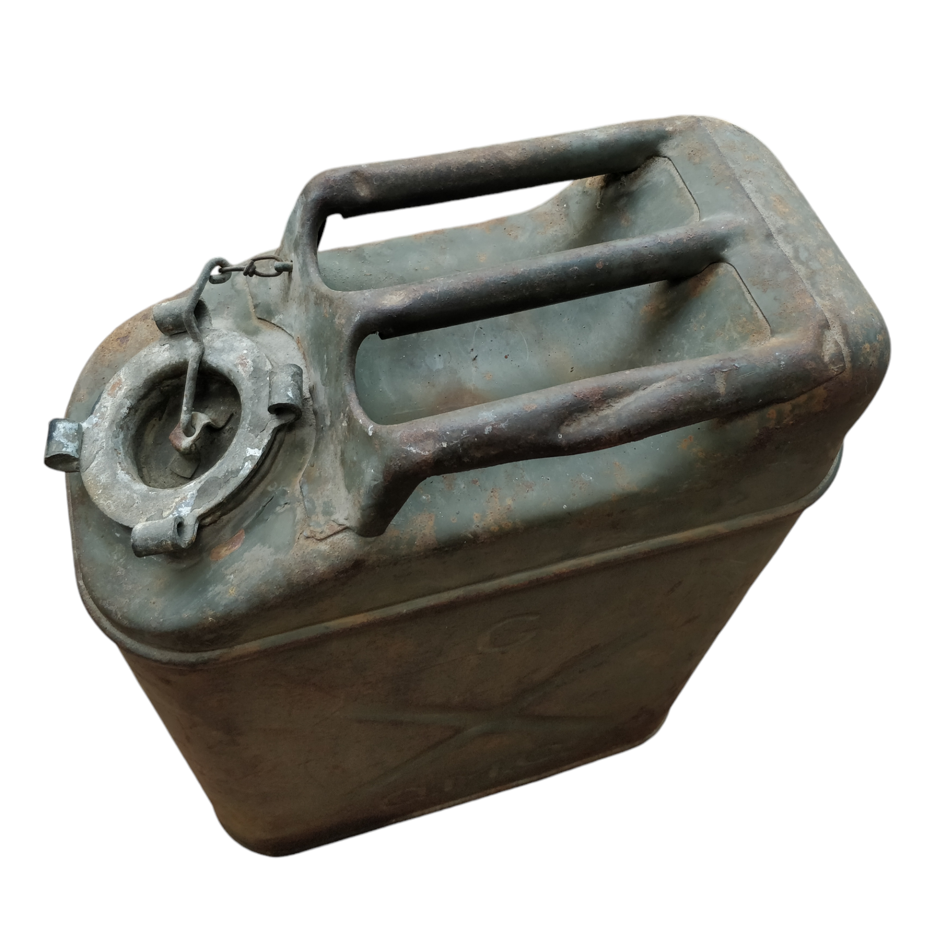 De jerrycan is over het algemeen nog in nette staat. Het is een schuurvondst uit de Ardennen. De jerrycan heeft wat roest en gebruikssporen, de dop zit helaas vast. De jerrycan lijkt nog geheel waterdicht, hoewel er wel wat losse roest aan de binnenzijde lijkt te zitten. Aan de onderzijde nog netjes gedateerd met maker en 44!