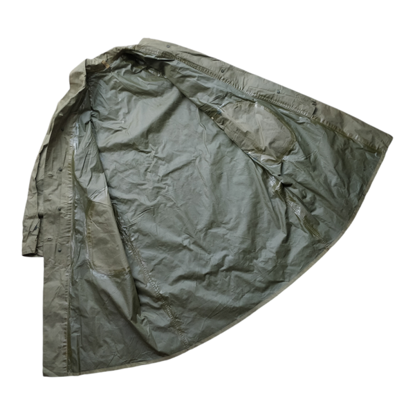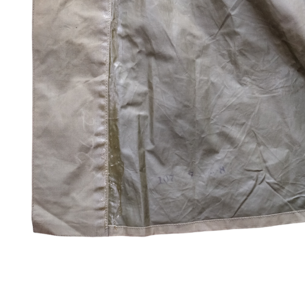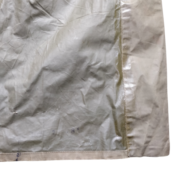 De regenjas is in uitstekende staat. Alle knopen zijn nog aanwezig en het label is goed leesbaar. De stof van de jas is nog soepel. Deze jassen werden gedragen bij hevige regenval, de stof is waterafstotend. Een interessant en lastig te vinden stuk voor de Amerikaans verzamelaar!