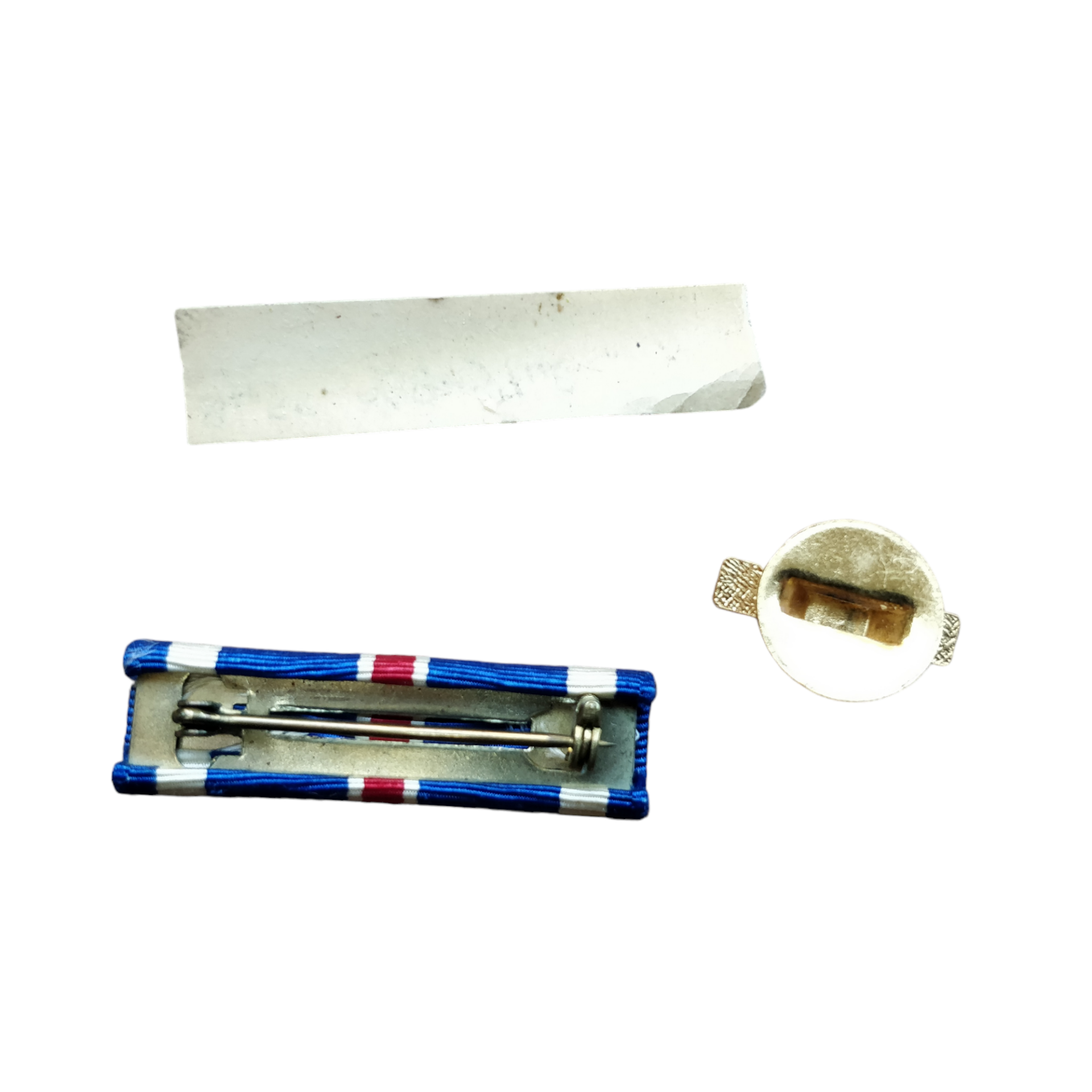 The medal is still in neat condition. The box has some signs of use. The set comes with ribbon bar, buttonhole badge, medal and the box. A nice piece to add to your American collection!