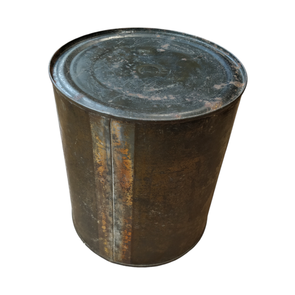 The tin is still in good condition and the text is still fairly legible. The tin has some wear and tear. These tins with food were used in Mess Halls for American soldiers. The tins are 17.5 cm high and 15.5 cm wide. A special piece for your American Collection!