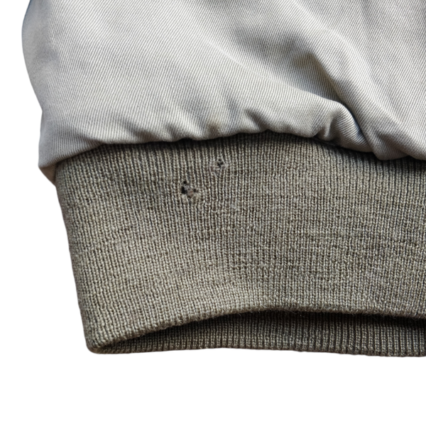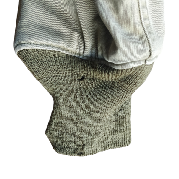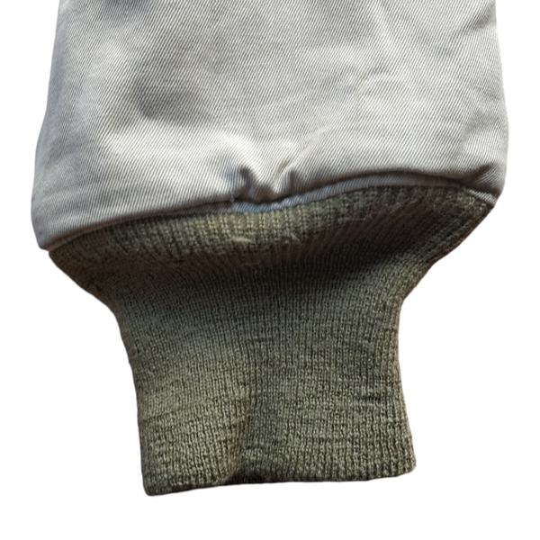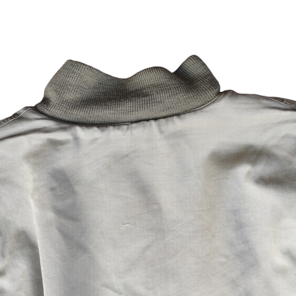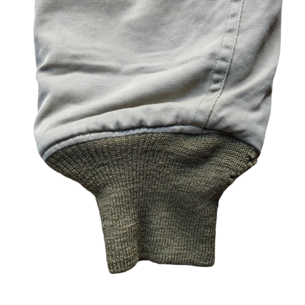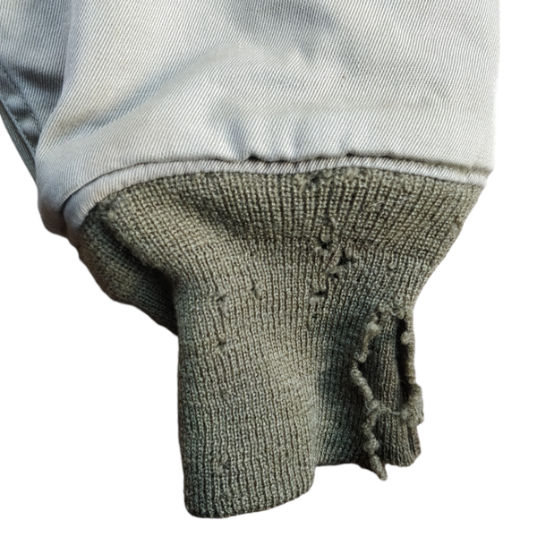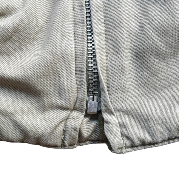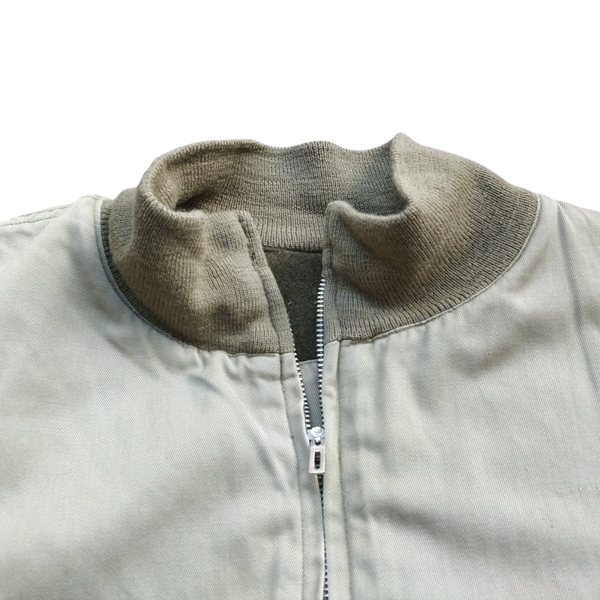 The jacket is still in excellent condition except for a few spots on the sleeve. These jackets, often referred to as Tanker jackets, were worn by tank personnel. The jacket has a well-functioning zipper marked Conmar. Unfortunately, there is no longer a label but it is a reasonable size. A hard to find jacket and perfect for the US collector!