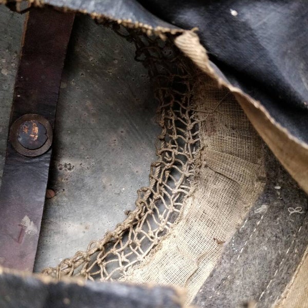 The helmet is in neat condition. Unfortunately, part of the interior has been removed due to asbestos, by removing this cushion part the bolt is also no longer present, which makes the interior a bit loose. The chin strap is still present as well as the original paint! Possibly M1917-A1 model from 1941? A nice piece for the collector!