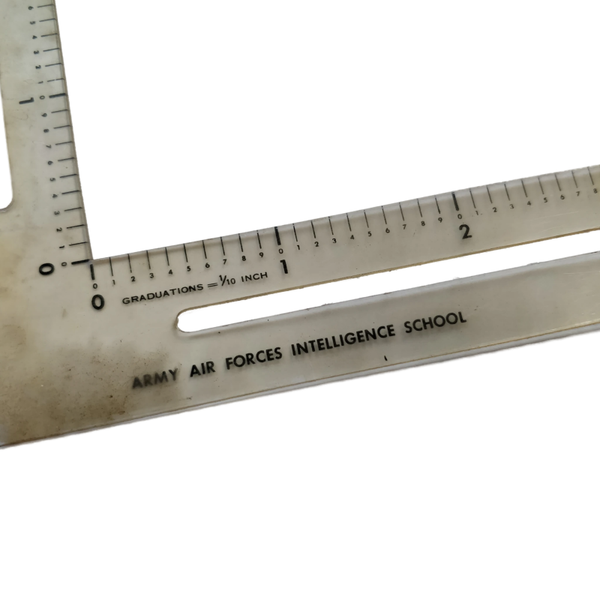 The plotting square is still in good condition and the parts can still move. The plastic is slightly discolored, the square comes with the original paper packaging. These pieces were used for calculating and drawing on maps. A must have for the Air Force collector!