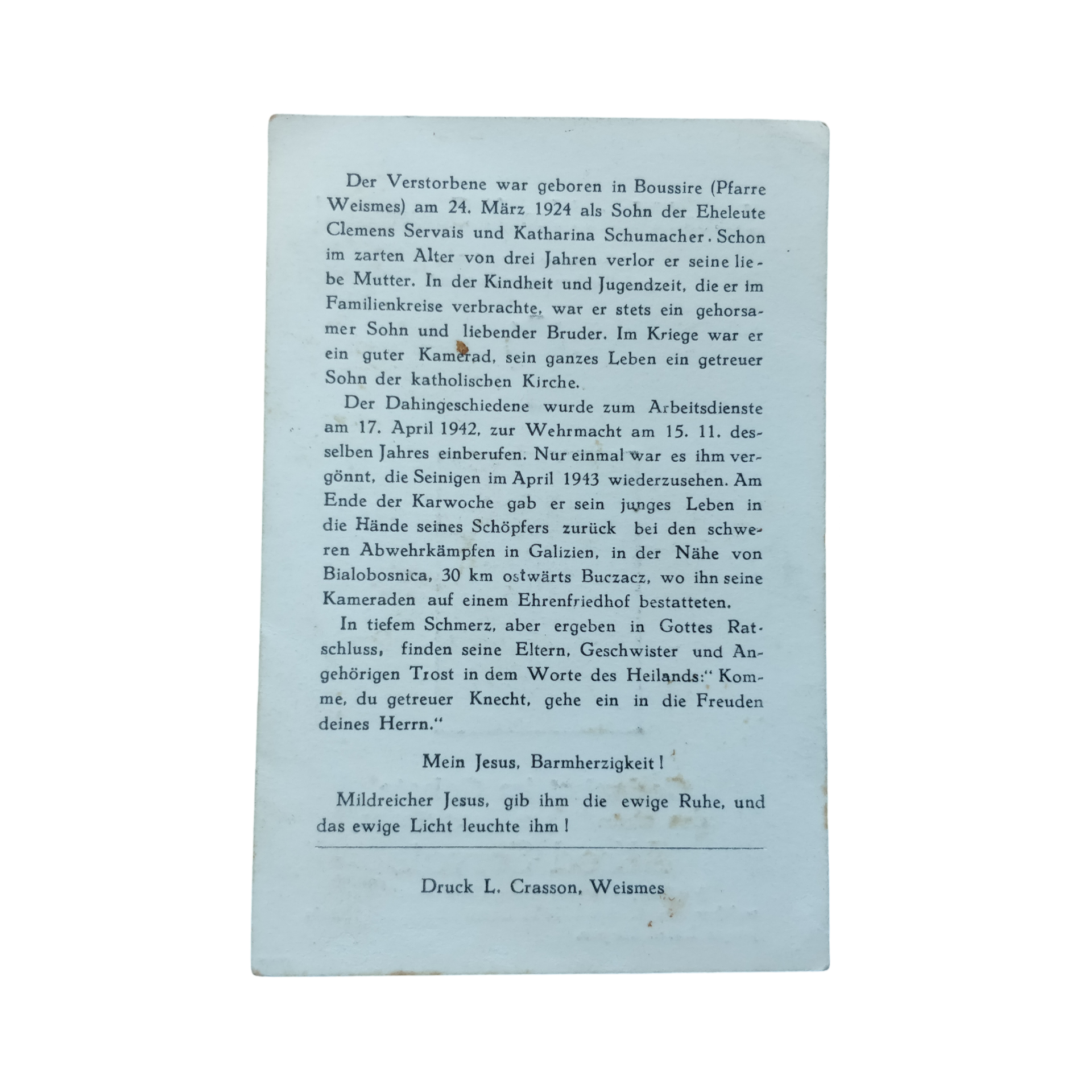 WWII German Death card