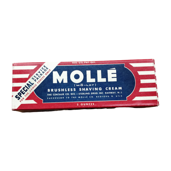De scheerschuim is nog zo goed als vol! Deze scheerschuim werd uitgereikt aan Amerikaanse soldaten tijdens de Tweede Wereldoorlog zodat zij zich ook in het veld konden scheren. Een leuk persoonlijk item van de Amerikaanse soldaat!