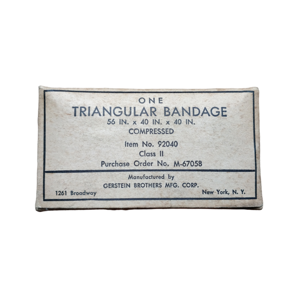 The bandage pack is still in good condition and comes in the original carboard box. The label still shows a maker. These packs were part of the equipment of American medical personnel.