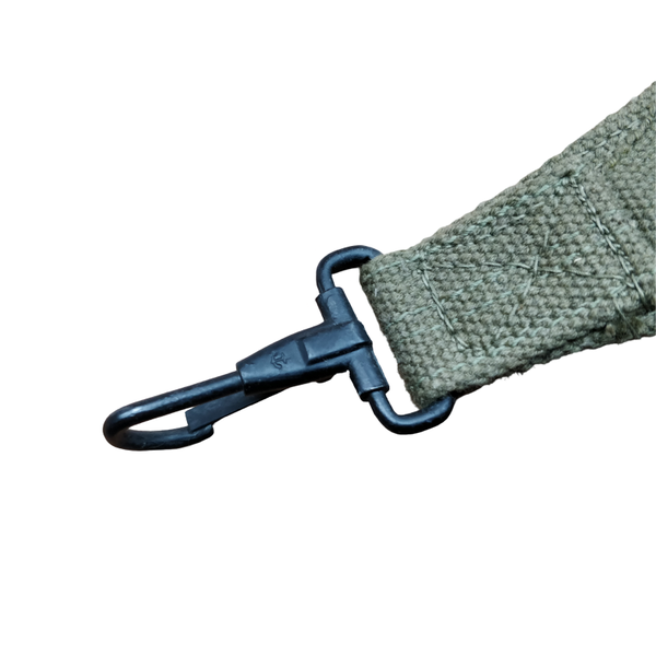 De tas is nog in nette staat en lijkt ongebruikt. De stempels zijn wat vaag maar er is nog U.S. en een maker met jaartal 1945 te zien. Deze tassen werden onder andere gebruikt door de Airborne paratroopers. De tas werd vaak gebruikt voor munitie en er past precies een .30 munitiekistje in. Een bijzonder item voor de Amerikaans verzamelaar!